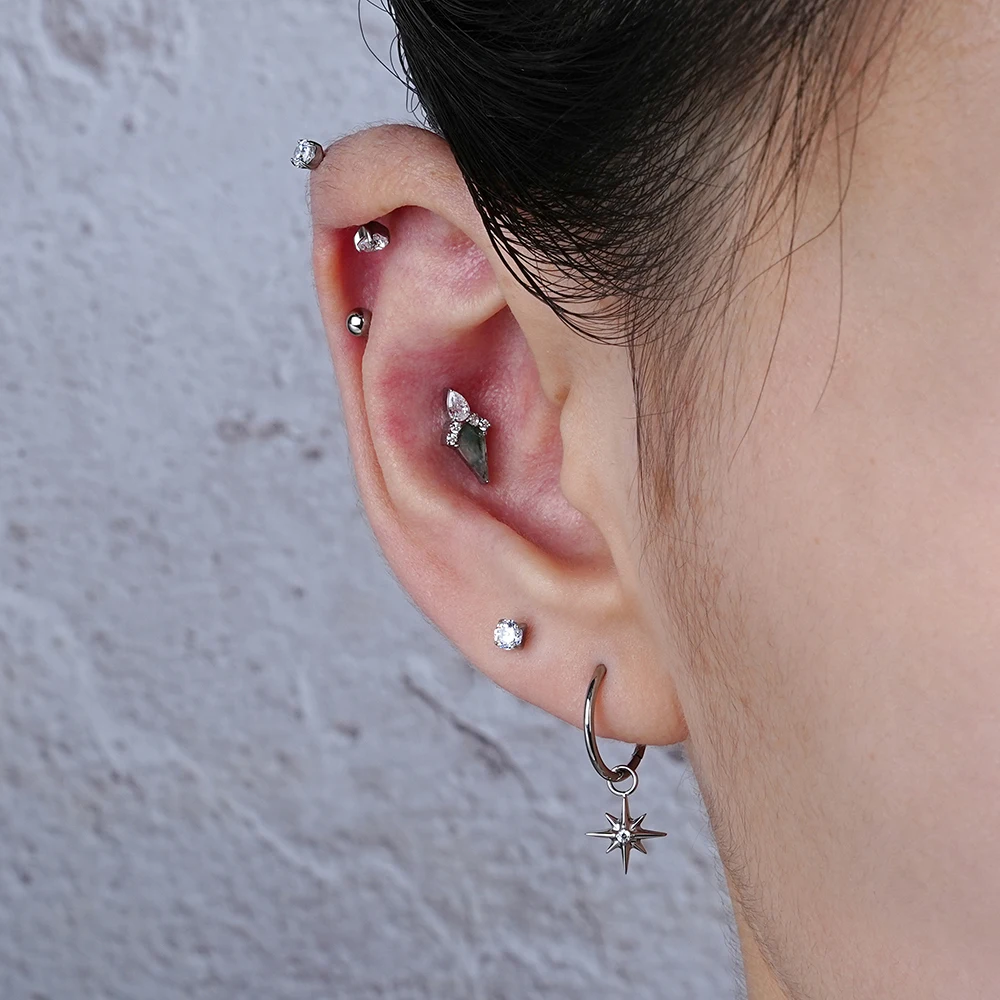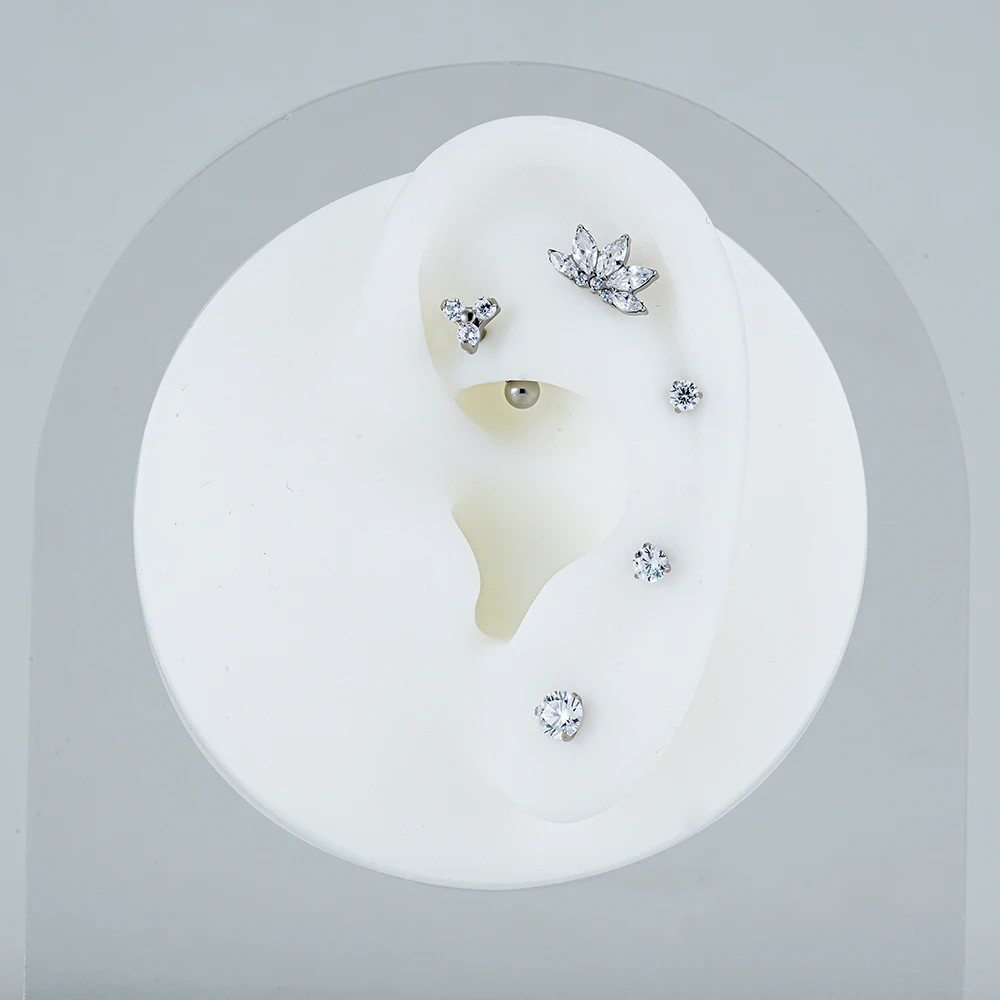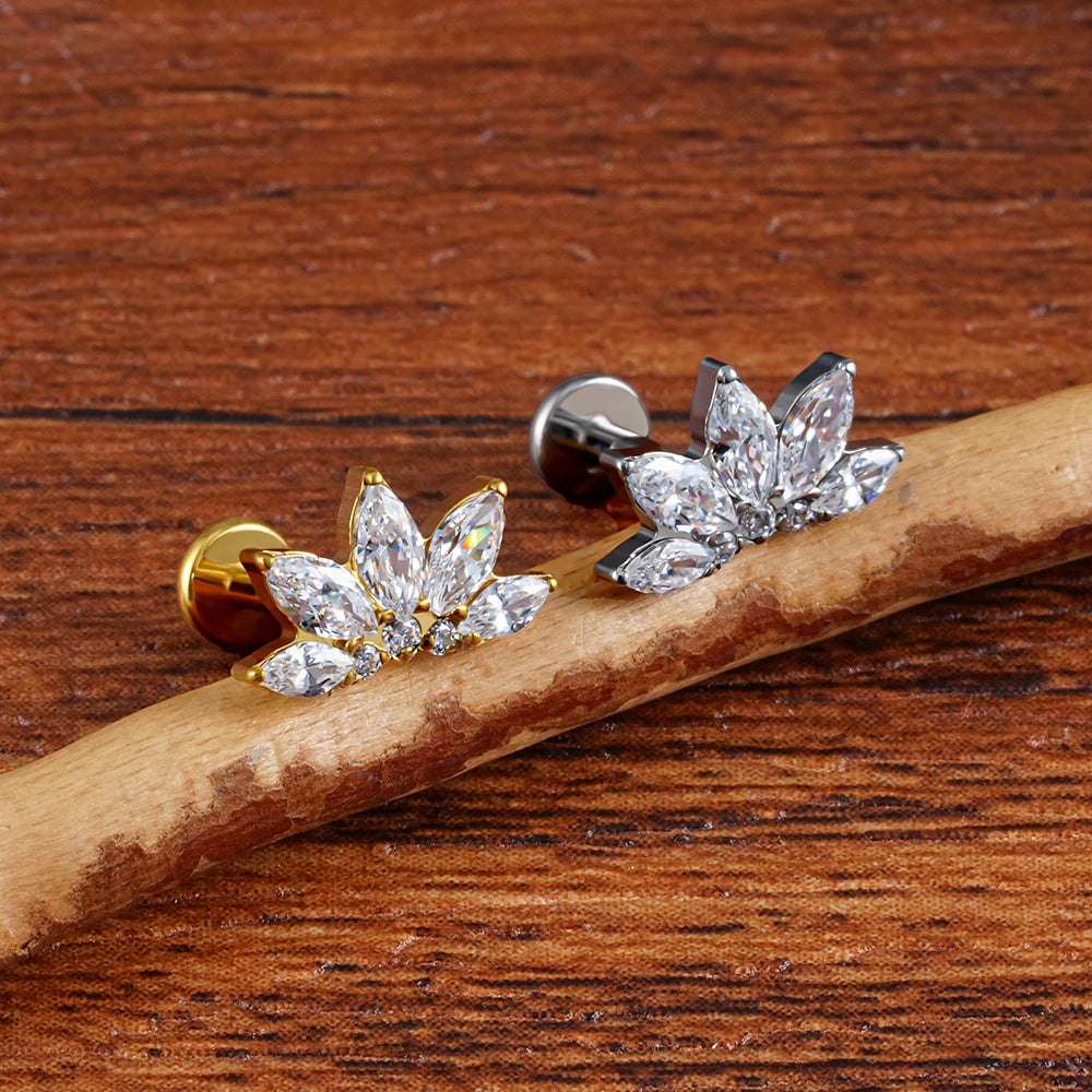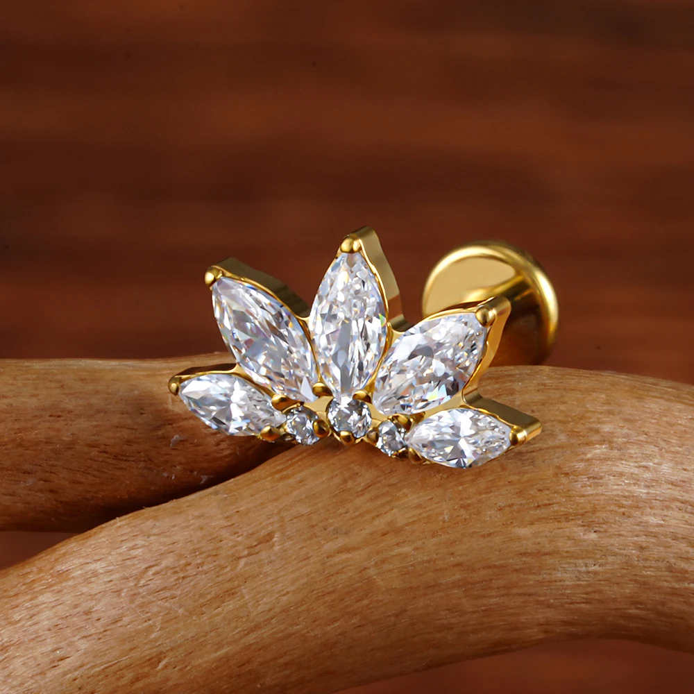Right Grand ASTM F136 Titanium 16G Marquise Lotus CZ Flower Flat Back Stud Labret Tragus Helix Cartilage Conch Earring Piercing